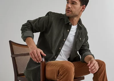 La chemise Onca est un modèle en velours côtelé qui apportera un style chic et décontracté. Elle dispose d'une poche poitrine et d'un col français associé à une gorge américaine.