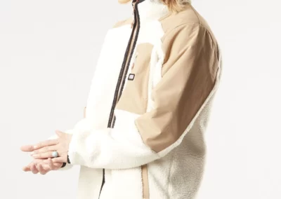 Une veste en matière polaire Sherpa au style retro.